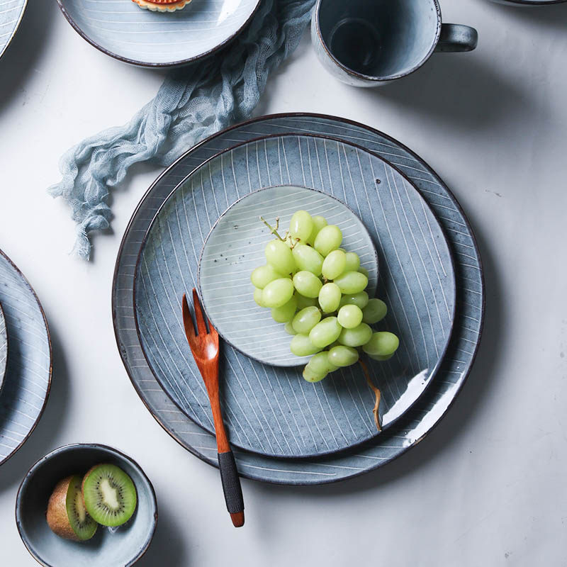 5 5-inch striped gray plate 5 5-inch striped small plate 7-inch striped soup plate 8-inch shaped stripe plate 8-inch striped soup plate 10 5-inch striped plate 10 5-inch light stripe plate 11