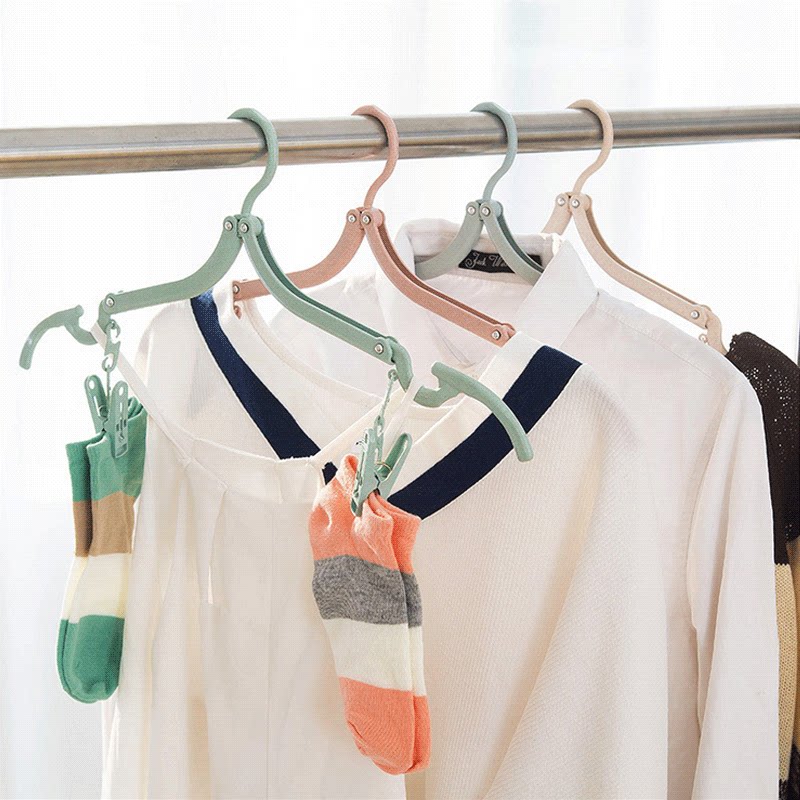 Travel folding hanger to go out hotel bathroom windproof clothes hanger portable finishing clothes with clips drying clothes hanger