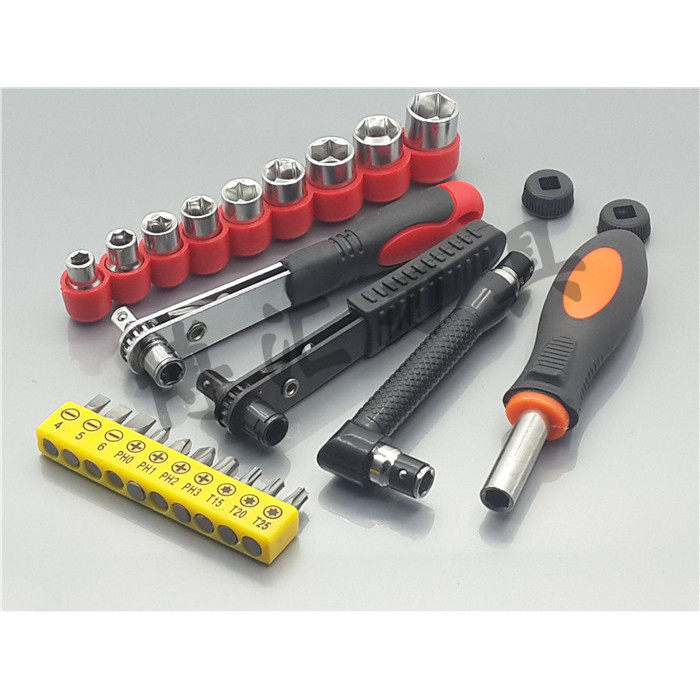 Retractable screwdriver (red treatment) Retractable screwdriver handle 9-piece socket L-shaped small wrench (without ratchet) Black ratchet wrench Black red ratchet wrench 10-piece set of bits 33-piece set of solid