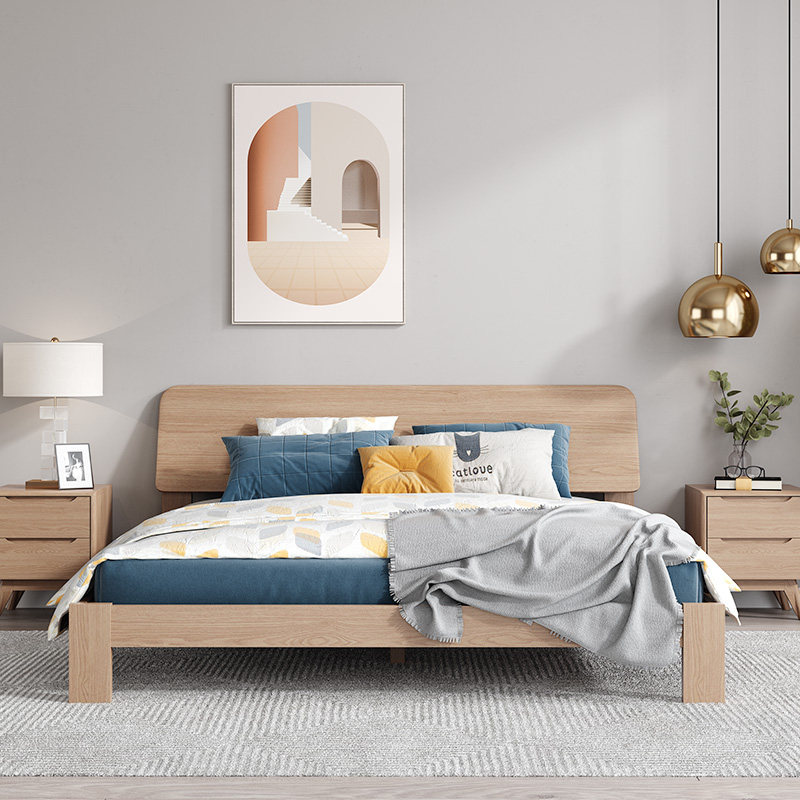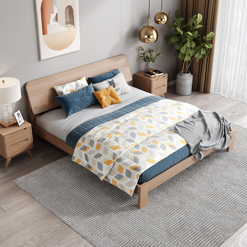 Nordic modern minimalist wooden bed 1 5m1 8m 1 2 hotel apartment master bedroom furniture solid wood multi-layer double bed