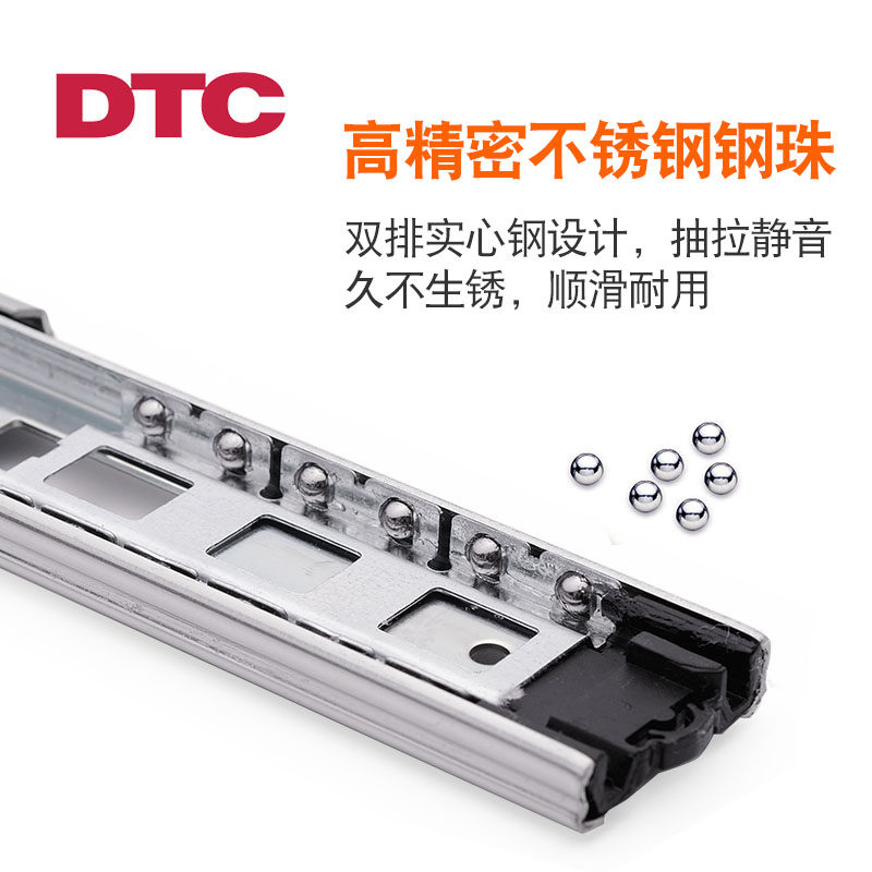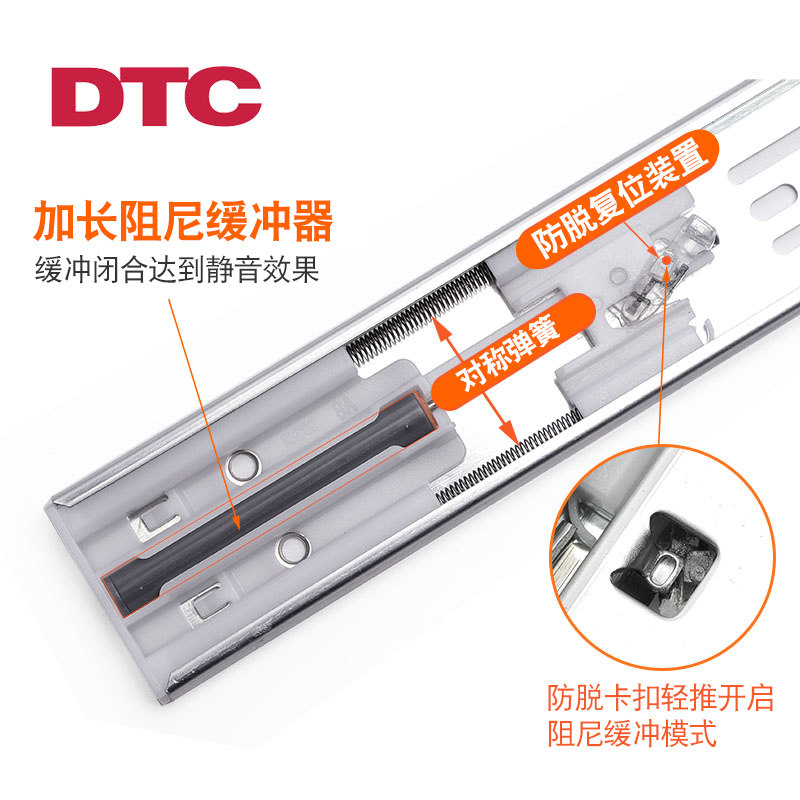 Dongtai DTC hardware drawer rail rail three-section track damping buffer slide rail 3-section silent ball