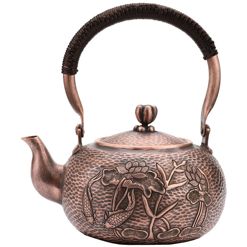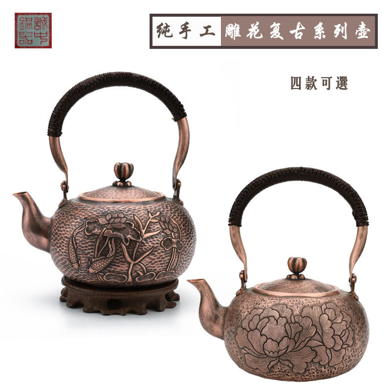 Copper Pot Pure Copper Hand Burning Kettle Retro Thickening Imitation Antique Carved Bronze Pot Red Copper Teapot Teapot Tea Tea Yunnan