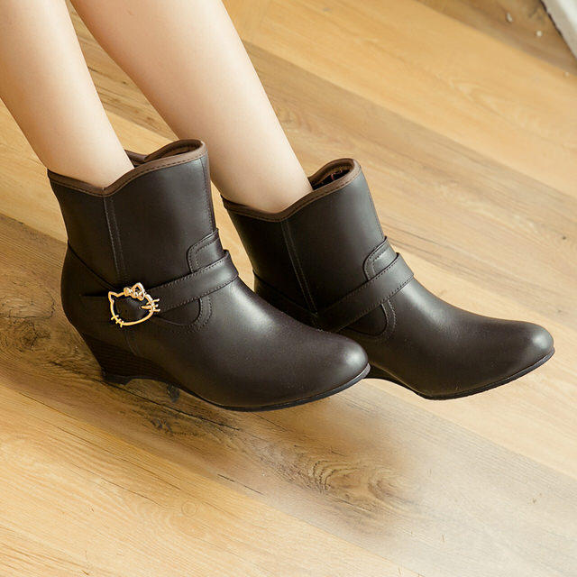 Kuru Mira X Hello Kitty Collaboration - V Mouth Wedge Wedge Ankle Rain Boots (Black)