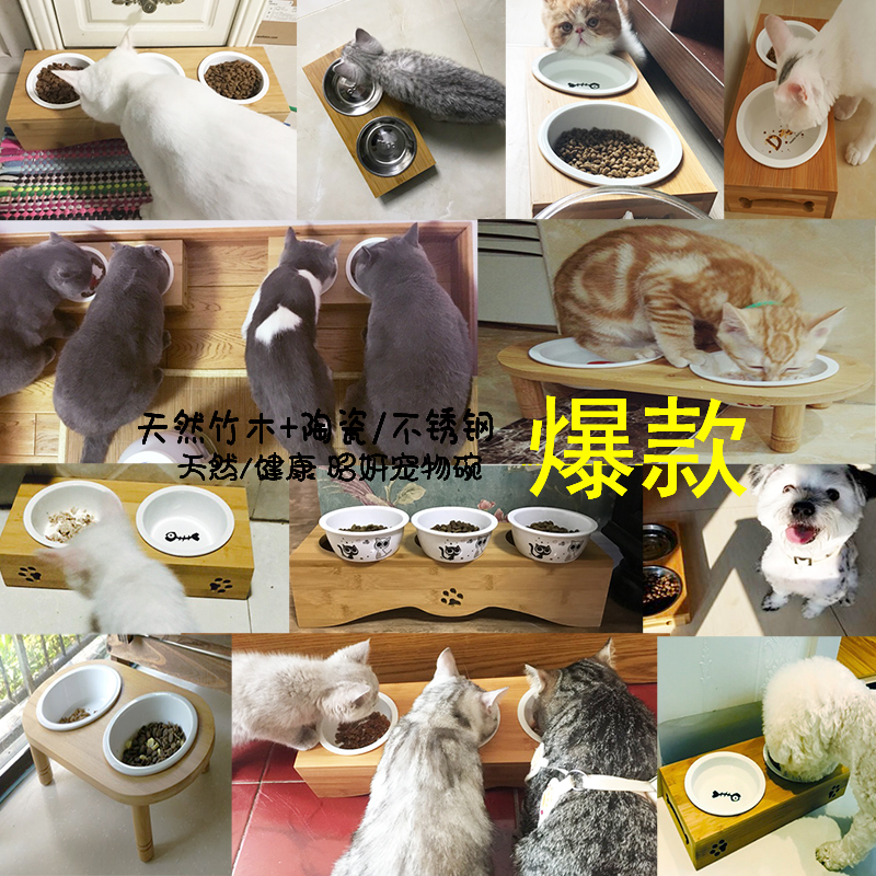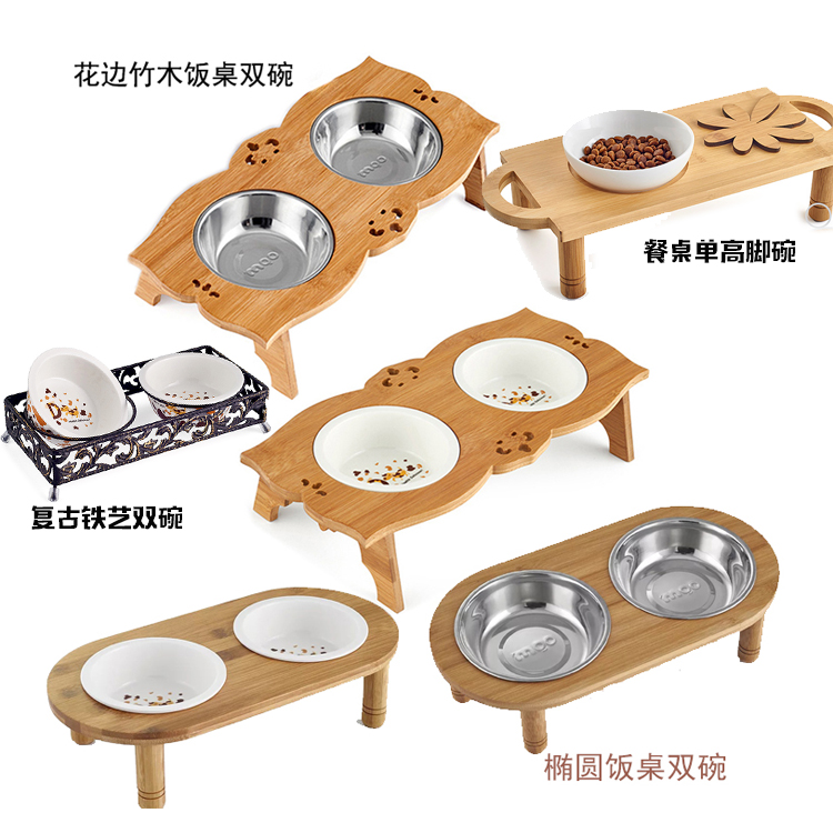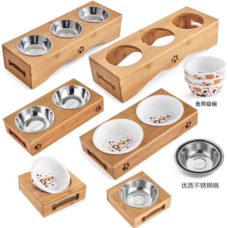 Pet Dog Bowl Cat Bowl solid wood Wood Bowl Rack Stainless Steel Single Double Bowl Three Bowls Water Bowls of Bowl Ceramic Bowls and Wood Table