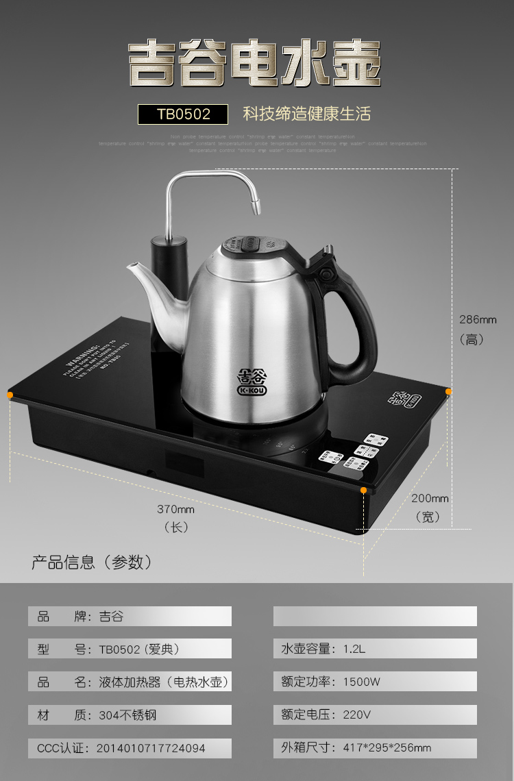 Jigu quick-cooking pot TB0502 automatic water supply 304 stainless steel boiling tea original Jigu electric kettle