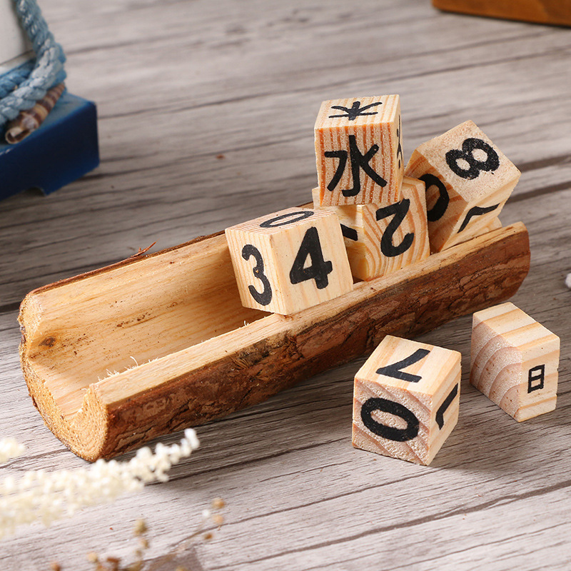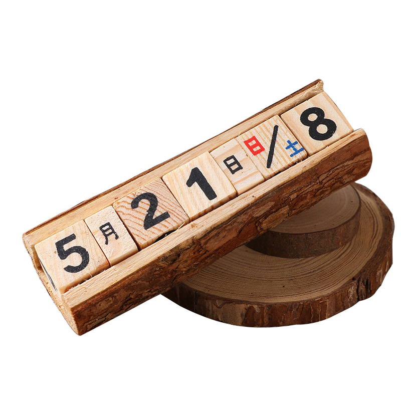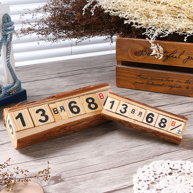 Vintage creative small calendar shooting props Log desktop decoration ornaments Living room coffee shop handicraft pendulum