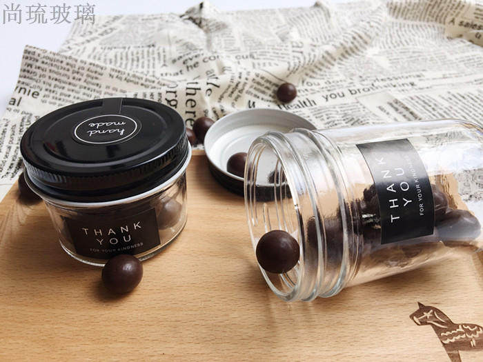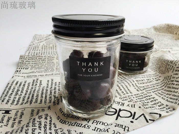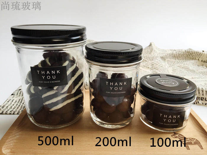 New black cap transparent glass seal caviar jam bottle honey sauce bottle 100ml200ml500ml