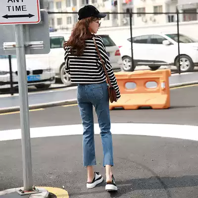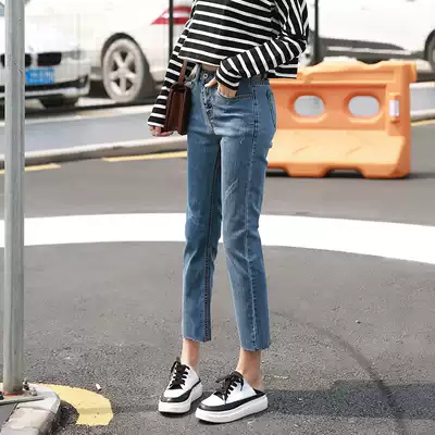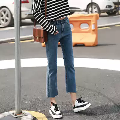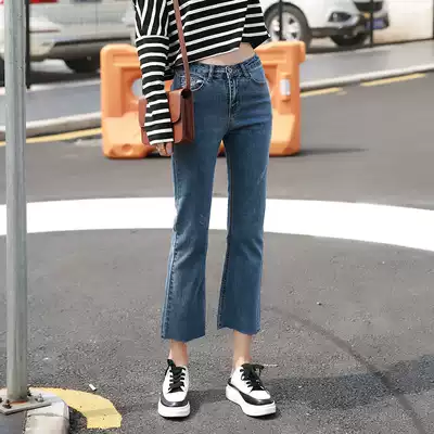High-waisted jeans female 2021 Spring and Autumn New Korean students slim joker loose wide leg straight micro Bell pants