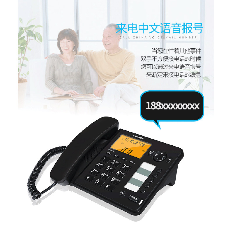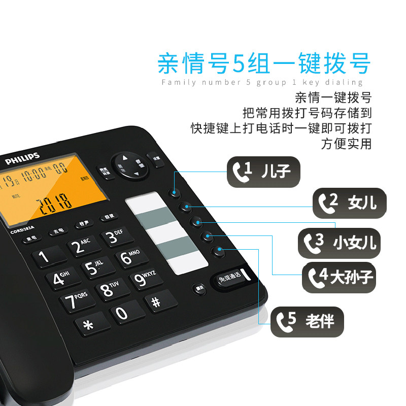 Philips CORD282A Fixed Household Electric Cable Telephone Landline Office Cable Cable Telephone One-key Dial Reporting Number
