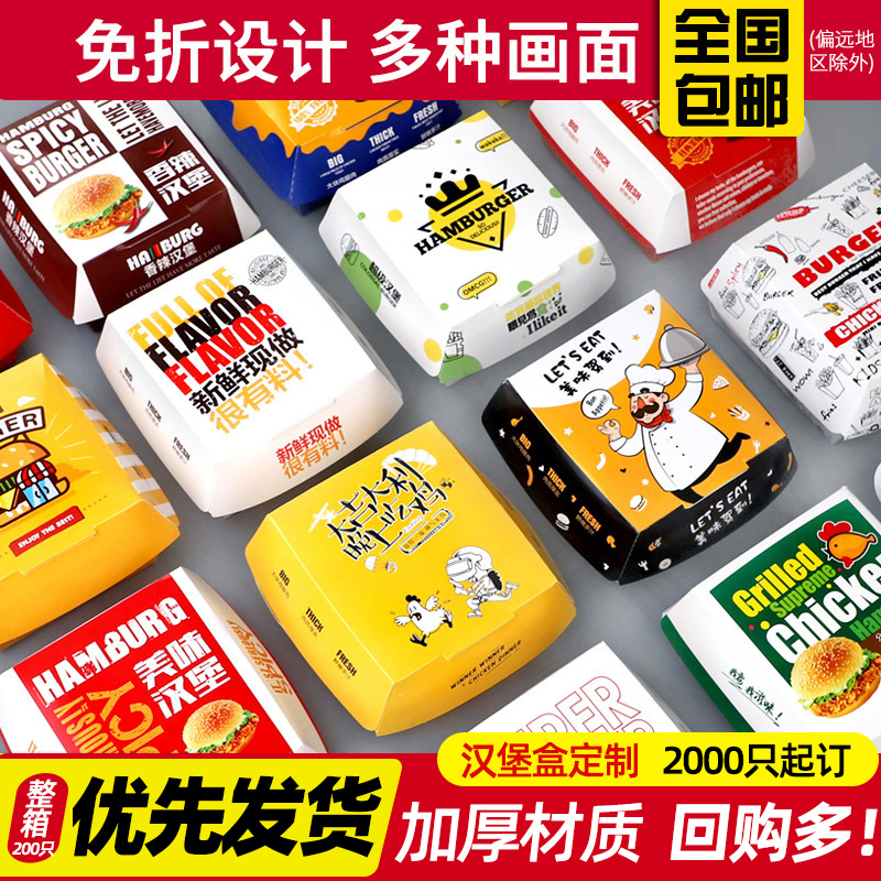 Hamburg box folded chicken leg burger packaging box oil - proof hamburger paper can be customized and thickened plate burner 200