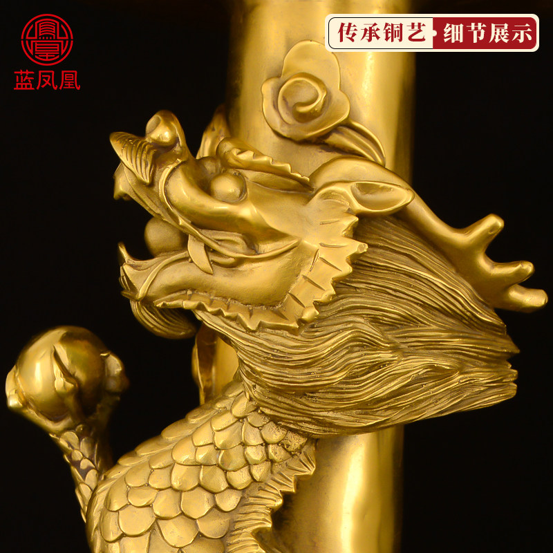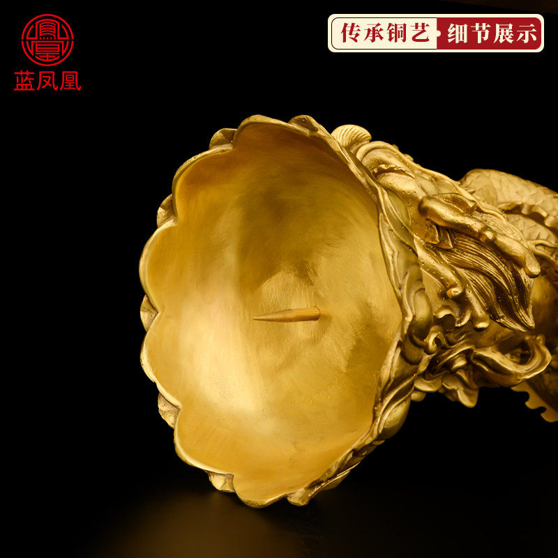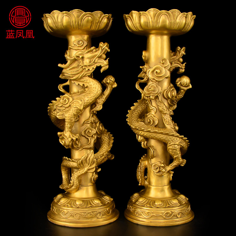 Copper candlestick ornament pure copper pair of Buddhist hall for Buddha lamp candle holder home living room decoration wedding supplies large size
