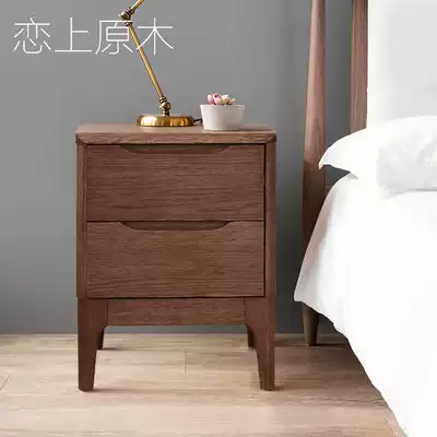 Walnut Chinese style modern pure solid wood simple narrow Mini small apartment bedside table oak bedroom storage cabinet