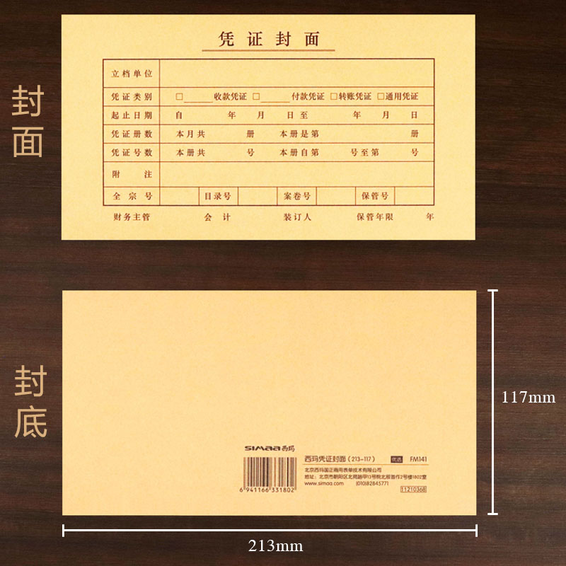 Sima General Financial Certificate Cover Cover 213*117 Thick Kraft Paper Booking with Cable Paper