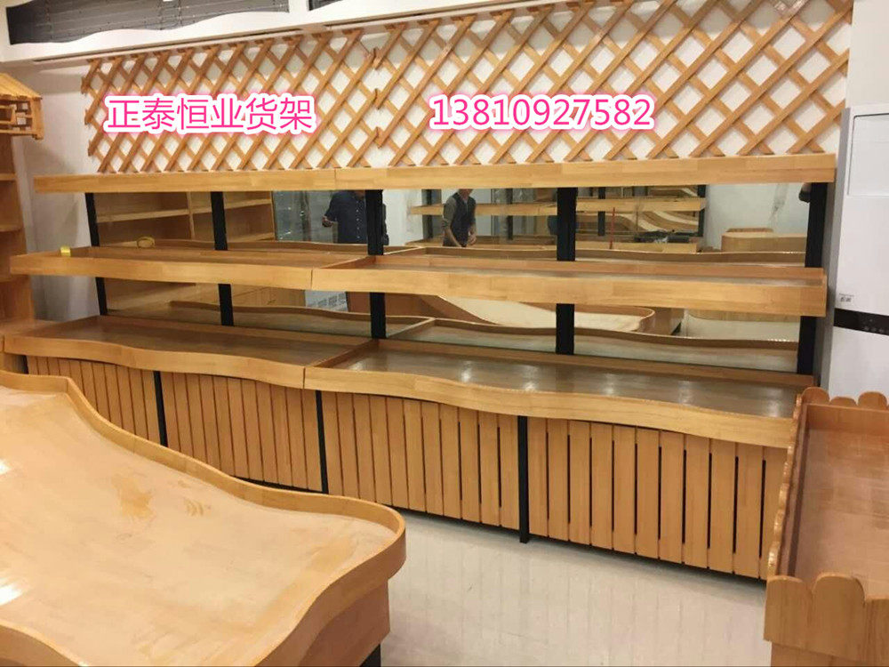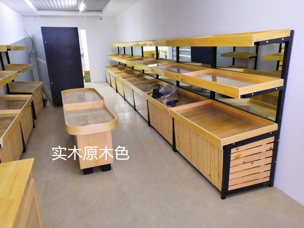 Factory direct sales Wave-shaped fruit rack Baiguoyuan fruit shop solid wood shelves Supermarket fresh fruit and vegetable display rack