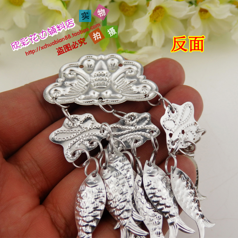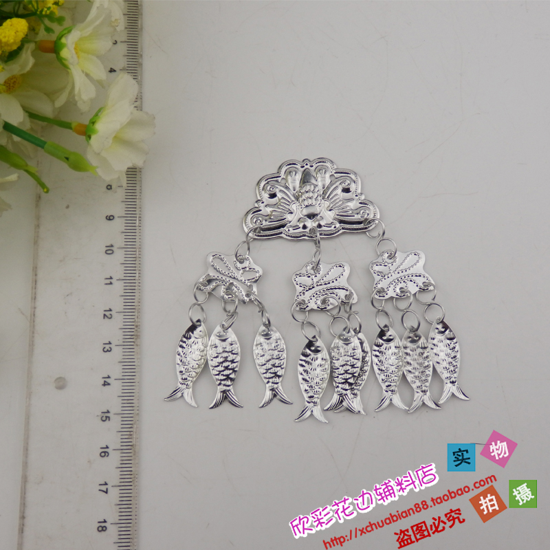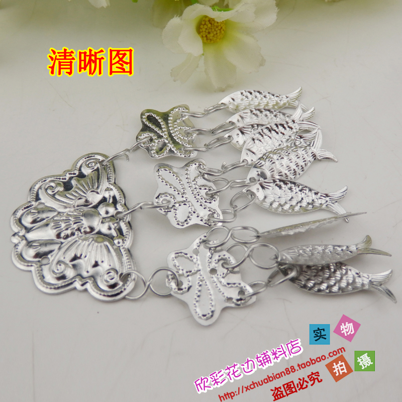 Minority clothing accessories decoration Stage performance simulation Miao silver ornaments Fish bell three small hanging (butterfly)