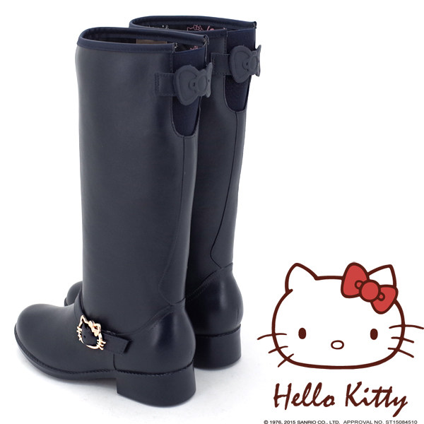 Kuru Mira X Hello Kitty joint-post-bow tie rider's long cylinder rain boots-Black