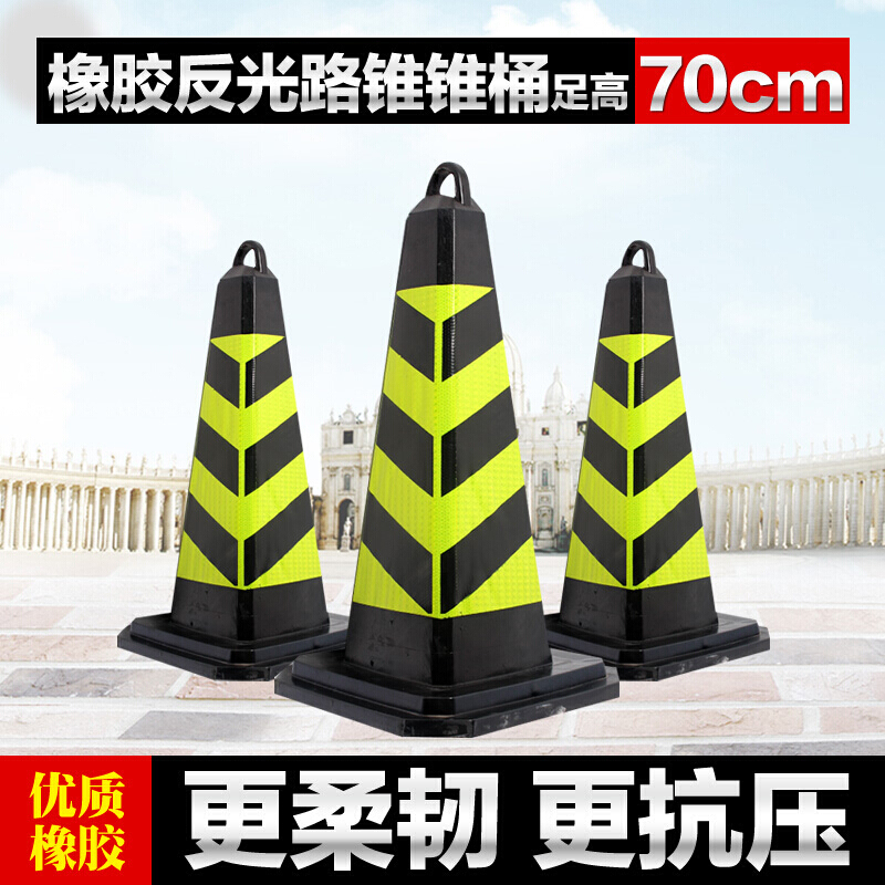 70cm rubber road cone ice cream bar barricade thickened square cone safety isolation cone barrel reflective warning do not park