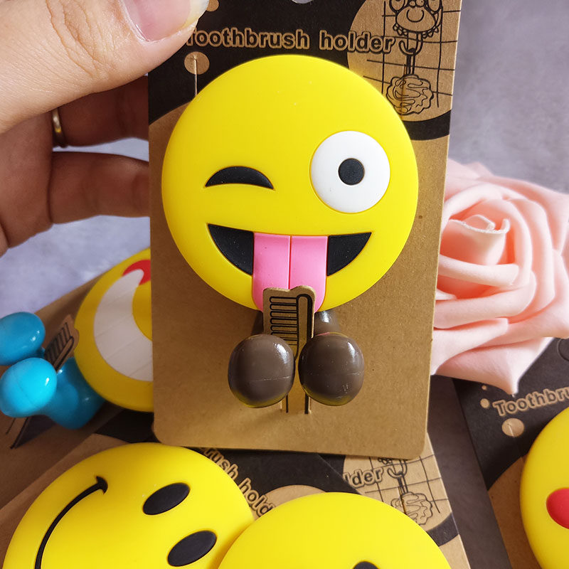 Smiley toothbrush holder Children's new toothbrush clip suction wall rotating hook Smile cartoon Japanese soft rubber toothbrush holder