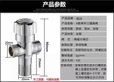 All copper thickened 4-point three-way double outlet angle valve one-in-two-out multifunctional washing machine triangle valve check valve