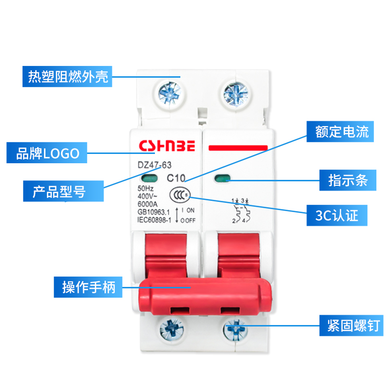 Miniature circuit breaker air switch C45 Miniature circuit breaker 1p lighting 2p Household 3p Air open 63a air conditioner DZ47