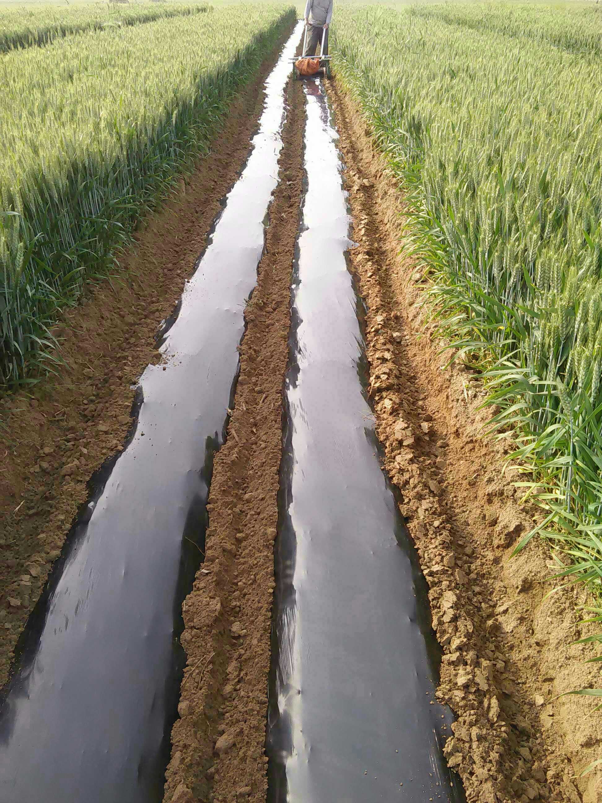Small hand-pulled mulching machine Laminating wheel Mulching film covering machine can adjust the width and narrowness of the small wheel depth wheel