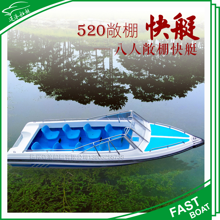 8 People 520 Convertible Thickened Double Layer Glass Fiber Fast Yacht Small Fishing Speedboat Sea Fishing Boat Sightseeing Yacht