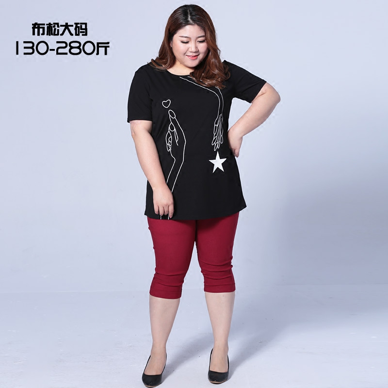 Q Summer Grand size Women's dress Short sleeves Long version hidden meat T-shirt Fat mm Gats increased easy to hit undershirt Fat Man's blouse