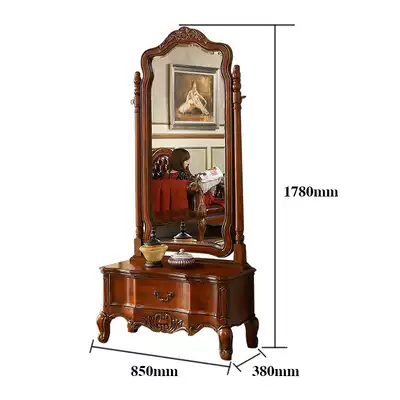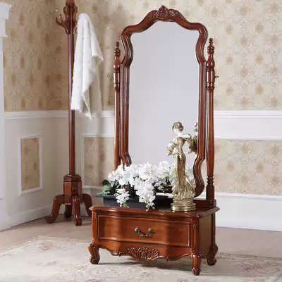 American solid wood full-length mirror full-body floor mirror storage cabinet makeup mirror carved full-length mirror movable mirror