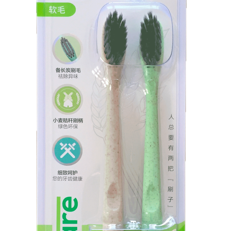 Shangkouqing Natural Wheat Straw Toothbrush Soft Hair Small Head Adult Set Home Green Environmental Protection Binchang Charcoal