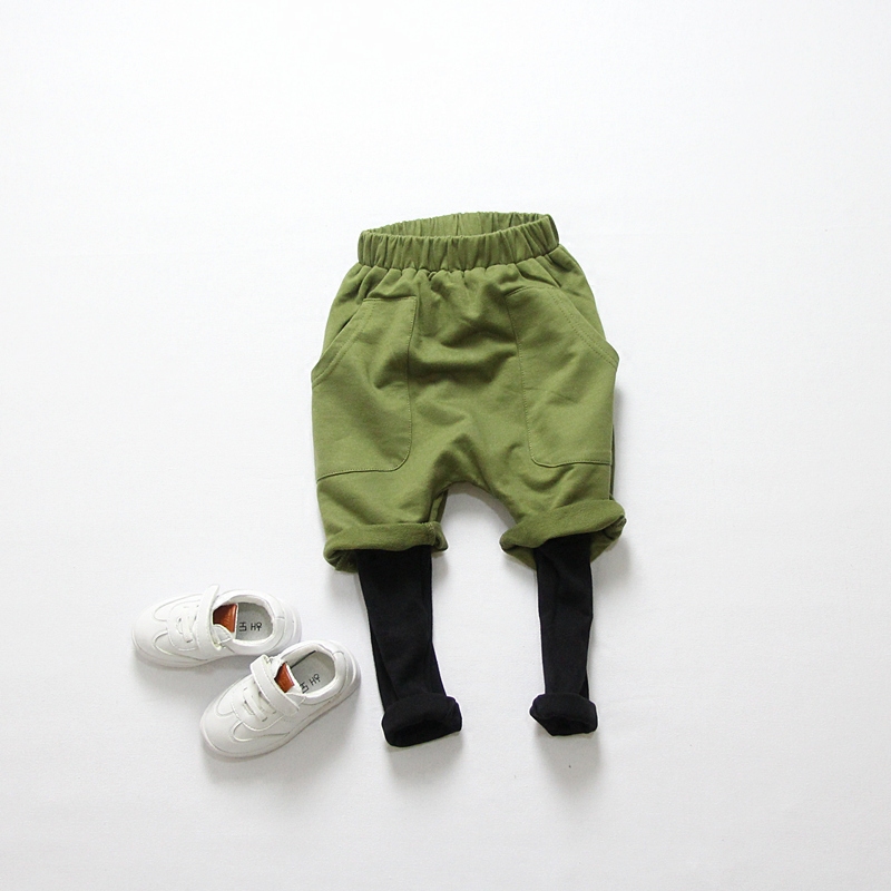 Spring and autumn Japanese children's clothing children's boys' cotton harem pants girls' big PP pants fake two pieces of sports thick cotton pants