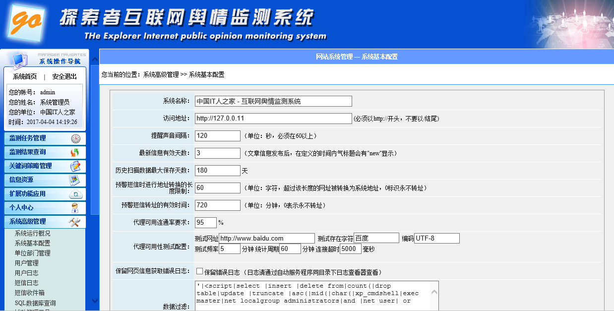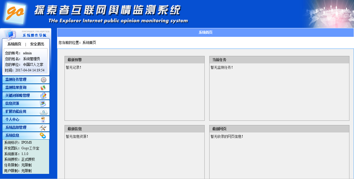 Explorer Internet public opinion monitoring system v1 1 0 official version of installation debugging service fee