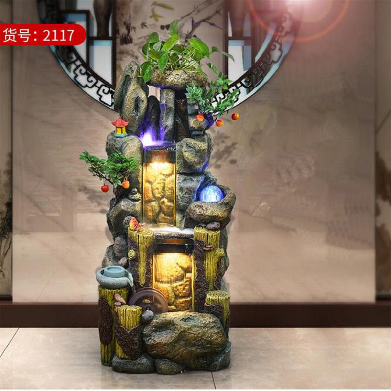 Rockery Lucky Flowing Water Fountain Living Room Feng Shui Wheel Ornament Balcony Water View Humidifier Floor Fish Pond Opening Gift
