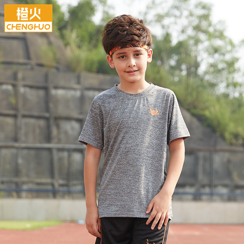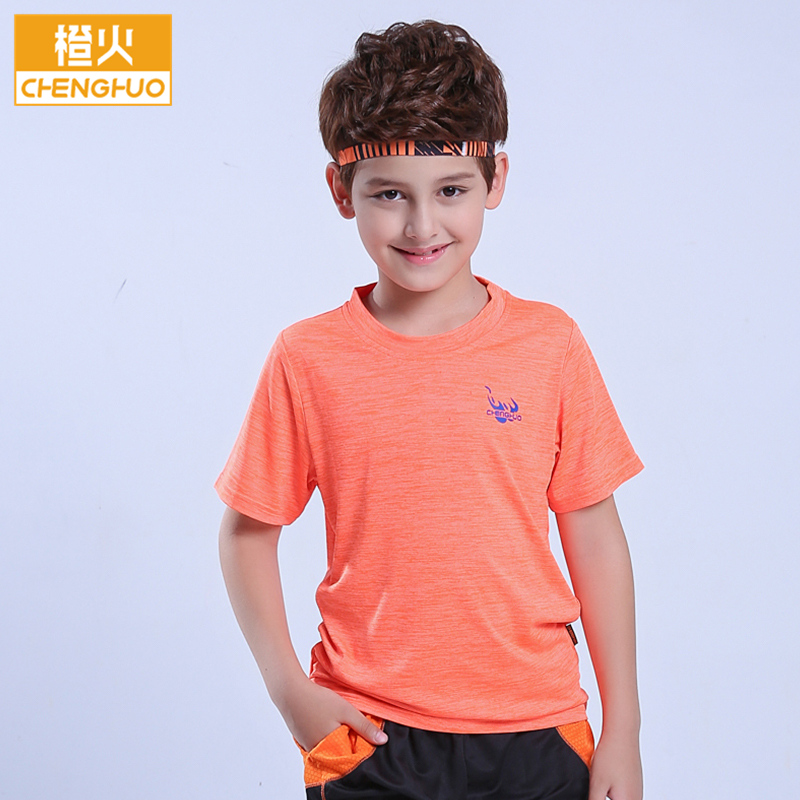 Orange Fire Children Clothing Summer Outdoor Children Speed Dry T-shirt Short Sleeve Sports Kid Quick Dry Speed Dry Jersey Boy Round Collar T-shirt