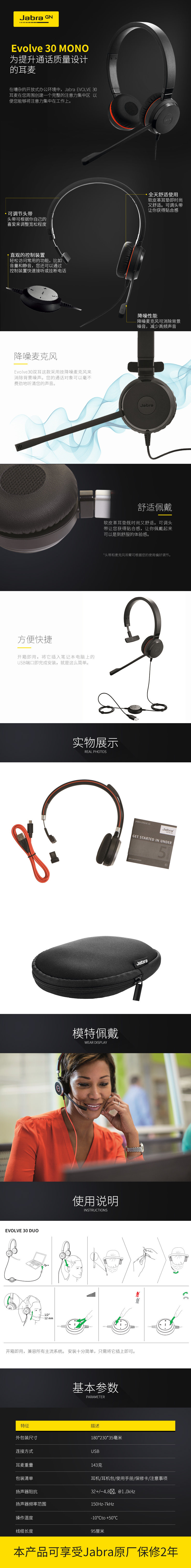 Jabra EVOLVE 30 UC Mono Single Ear Headphones usb Subwoofer Headset