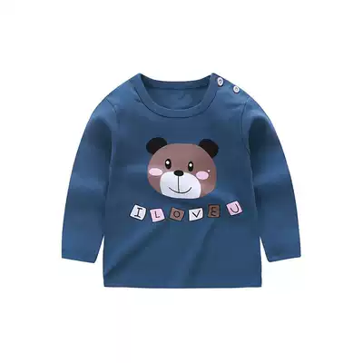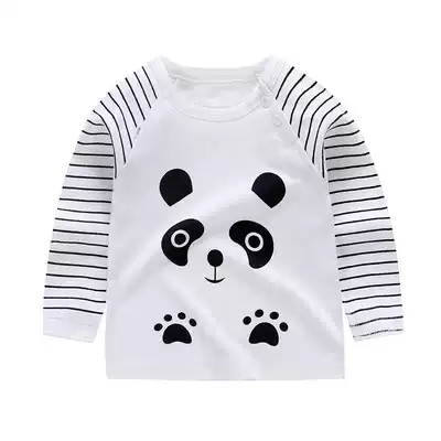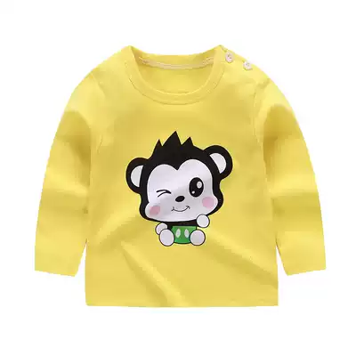 Shoulder buckle baby T-shirt long sleeve men's and women's clothing cotton 1-2-3 years old 0 children spring and autumn cotton baby round neck shirt 4