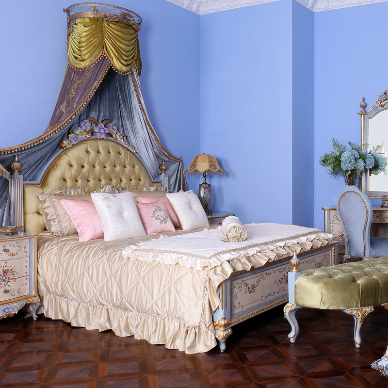 Blue purple bed head cabinet Blue purple bed Blue purple dressing table Blue purple makeup mirror Blue purple makeup chair Blue purple bed tail stool Blue purple wardrobe