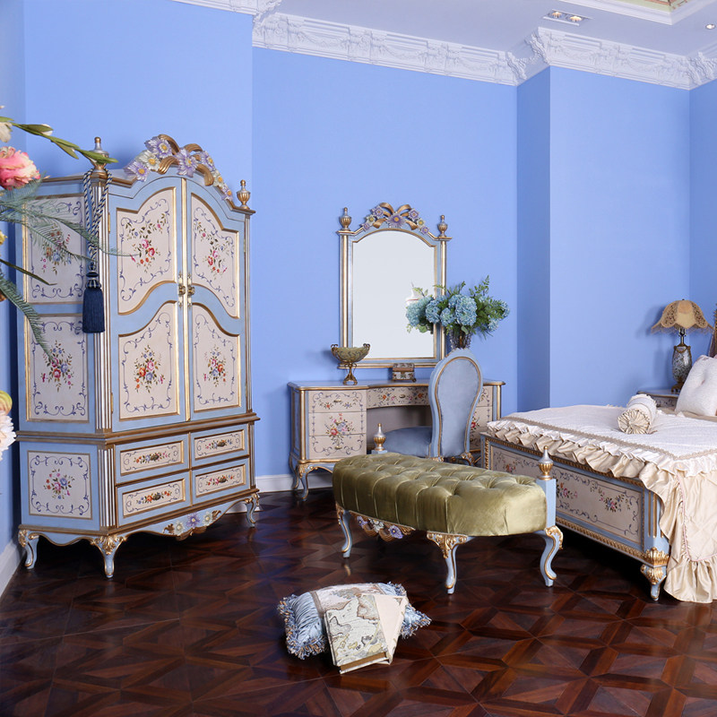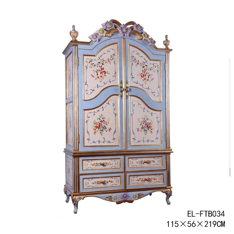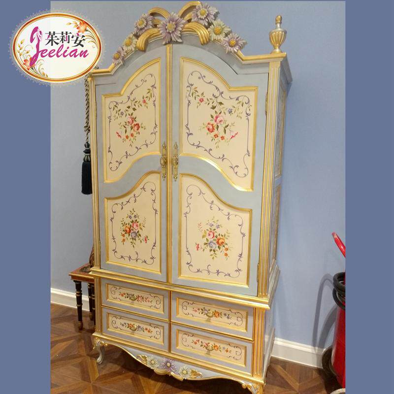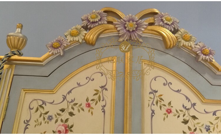 Yi Lian family European style Italian real retro romantic blue purple carved heavy industry hand-painted French solid wood double door with pumping wardrobe