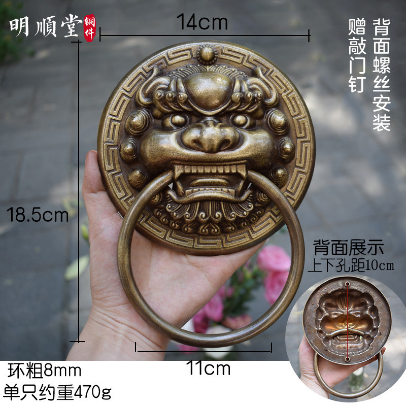 Antique door pure copper pull ring Chinese style folio door Beast head ring wooden door handle Pure copper unicorn door ring copper handle