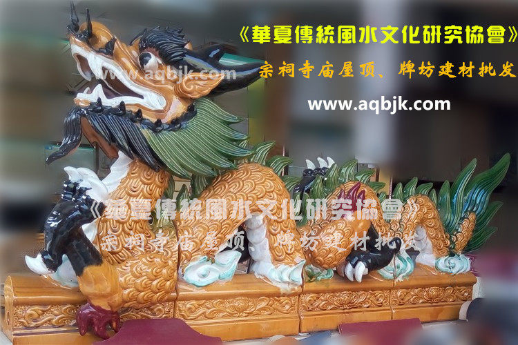 The roof of the glazed tile temple is carved and decorated with dragon and phoenix auspicious two dragons competing for beads on the roof of the ancestral hall of Shenlong.