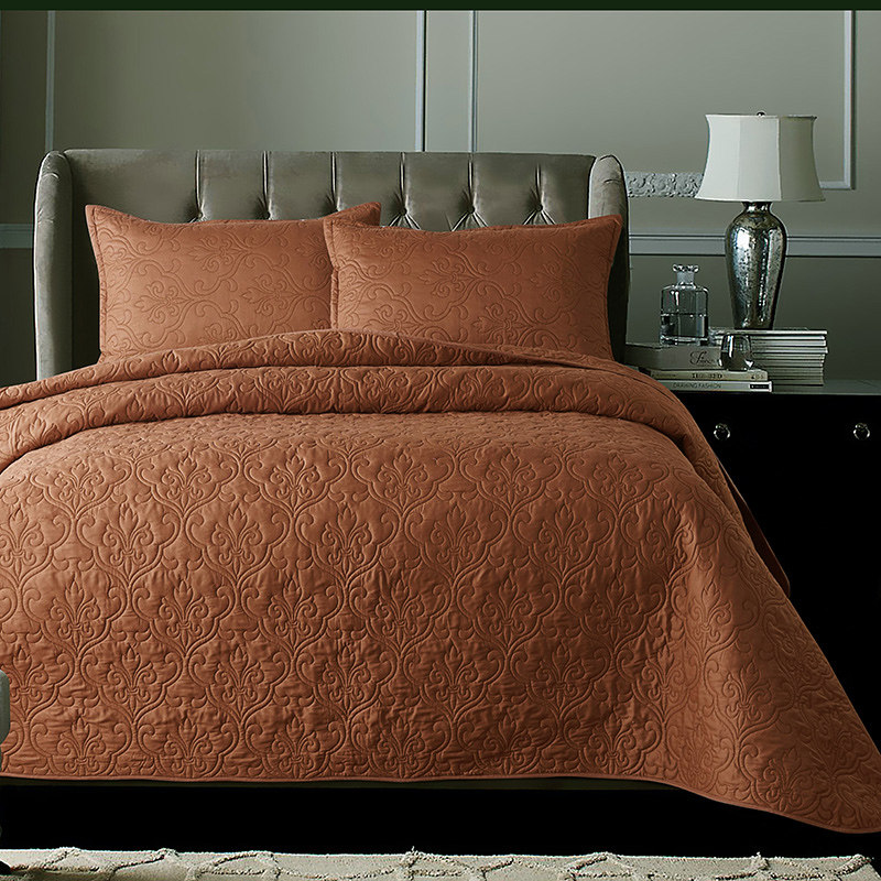 Eurostyle pure colour pure cotton bed cover quilted with cotton quilted bed linen approximately full cotton kang single non-slip three sets of vegetarian colors