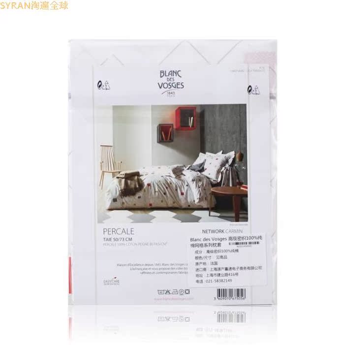 French imports Blanc des Vosges Advanced dense woven pure cotton grid pillowcase pro-skin sheet only 73 * 50cm
