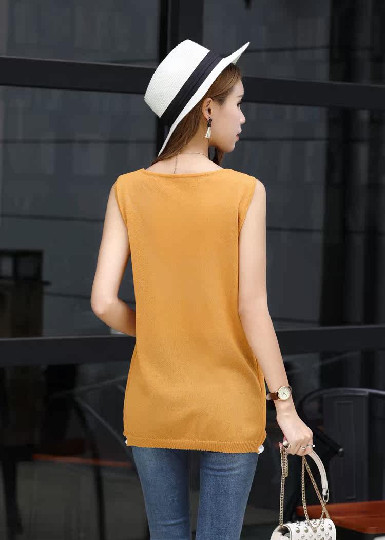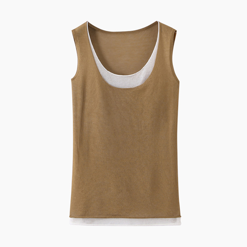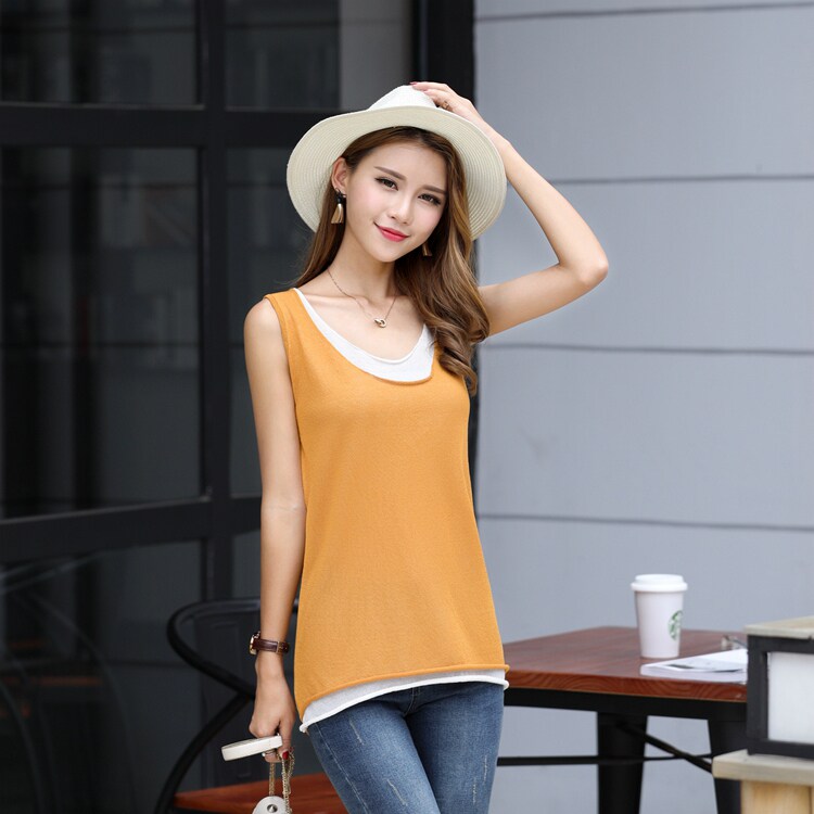 Summer Knit Harness Vest Woman Breathable Double Layer Round Collar Short sleeveless knitted sweatshirt sweaters undershirt woman thin