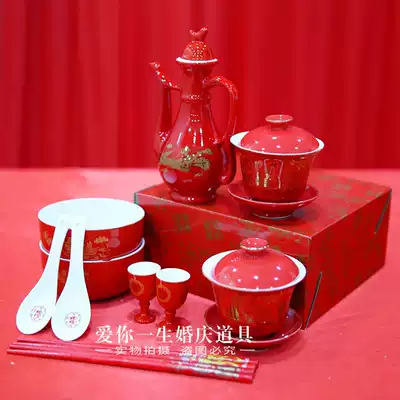 And offer tea bowl with a pair of hi-bowl with a bow and arrow electronic Brazier LED carbon light a fire pots saddle Chinese red fabric circle six piece set Chinese red color cylindrical table pendulum of four kneeling pad a pair of 合卺 Cup a pair of Dragon and Phoenix candles a pair of hi