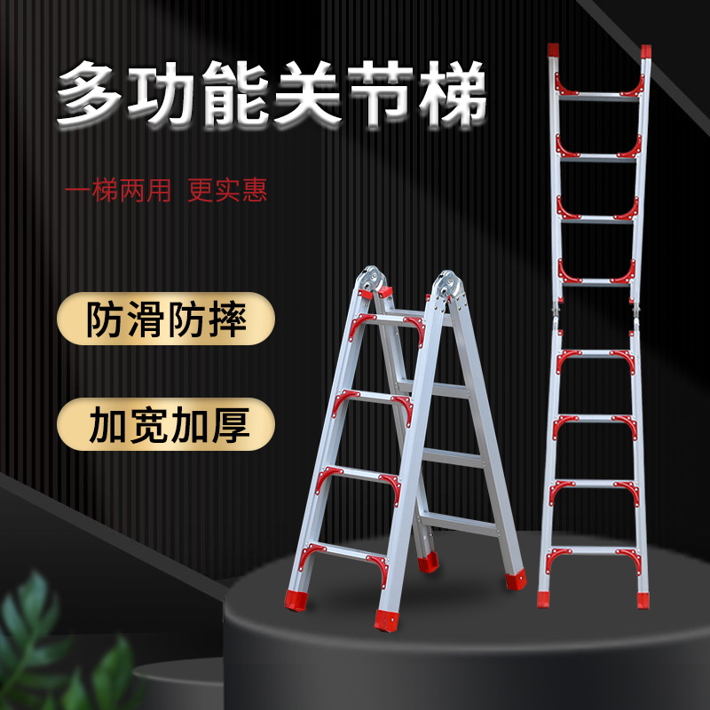 Home Thickening folding straight ladder telescopic multifunction herringbone ladders Double side ladders Works with terractics flat terraces