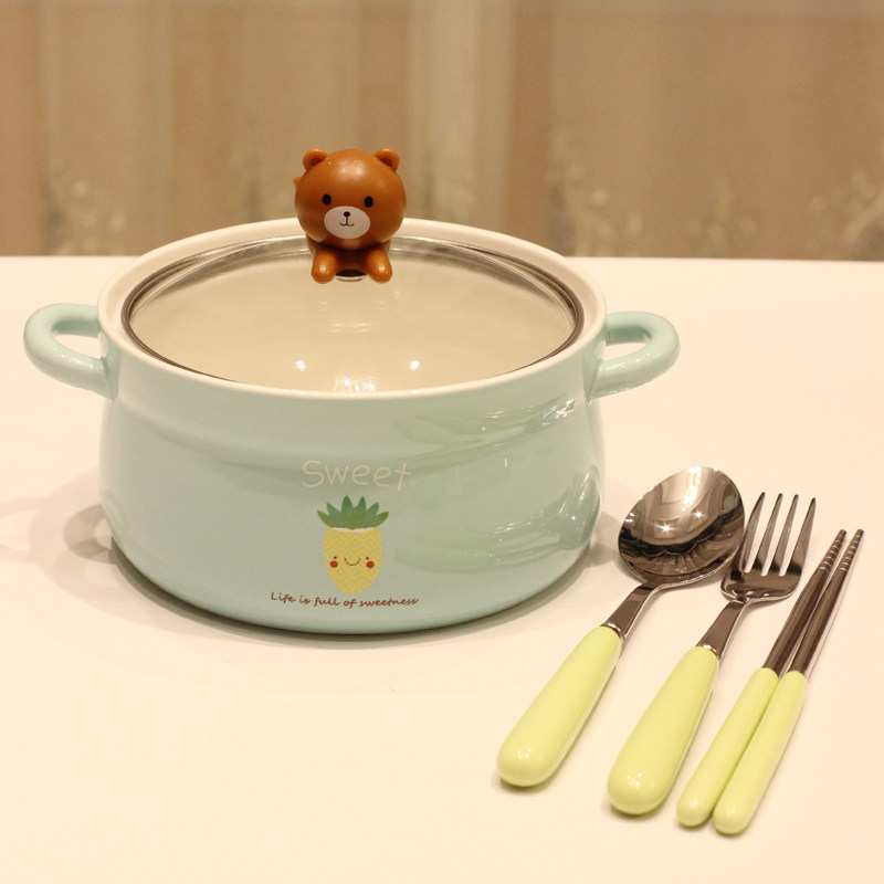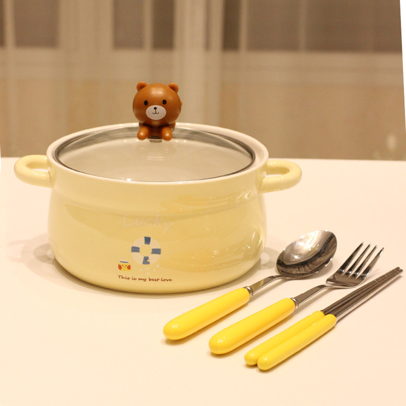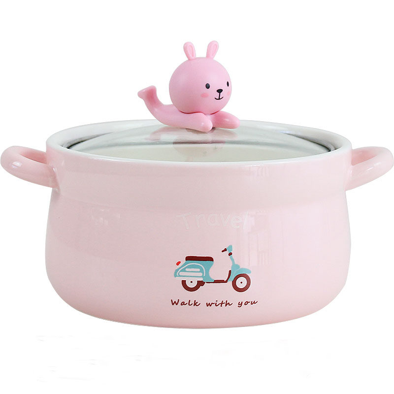 Japanese-style cartoon large bubble bowl with double-ear ceramic bowl cute pupil jobs bowl soup dishwasher kit