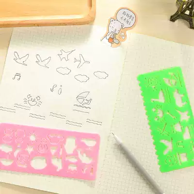 Korean stationery creative candy color plastic cartoon drawing ruler Children's art ruler Painting template ruler hand account decoration