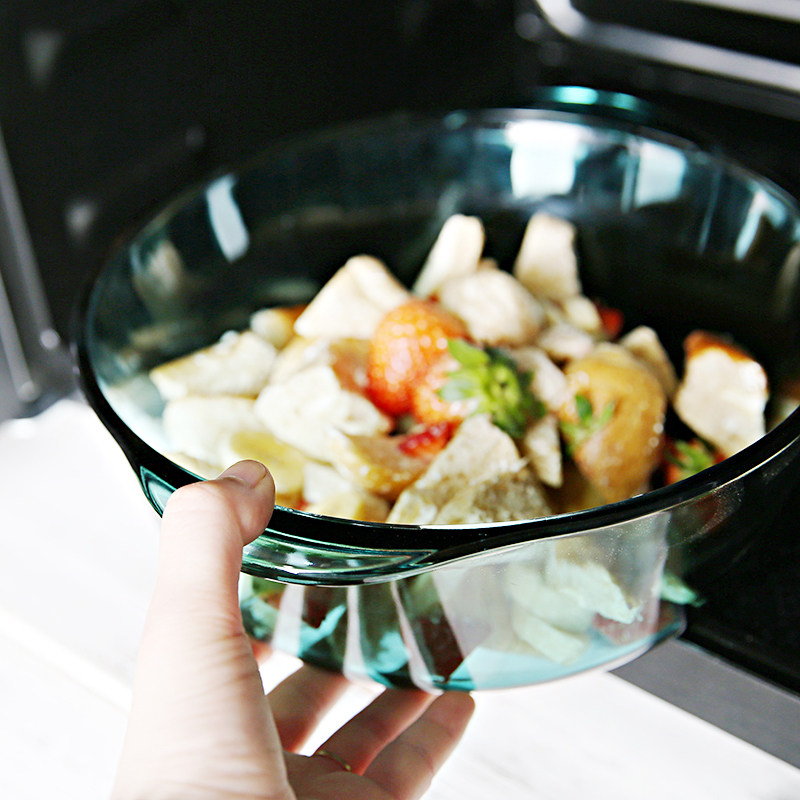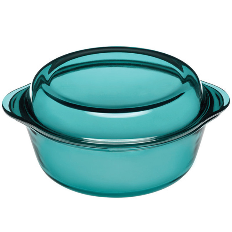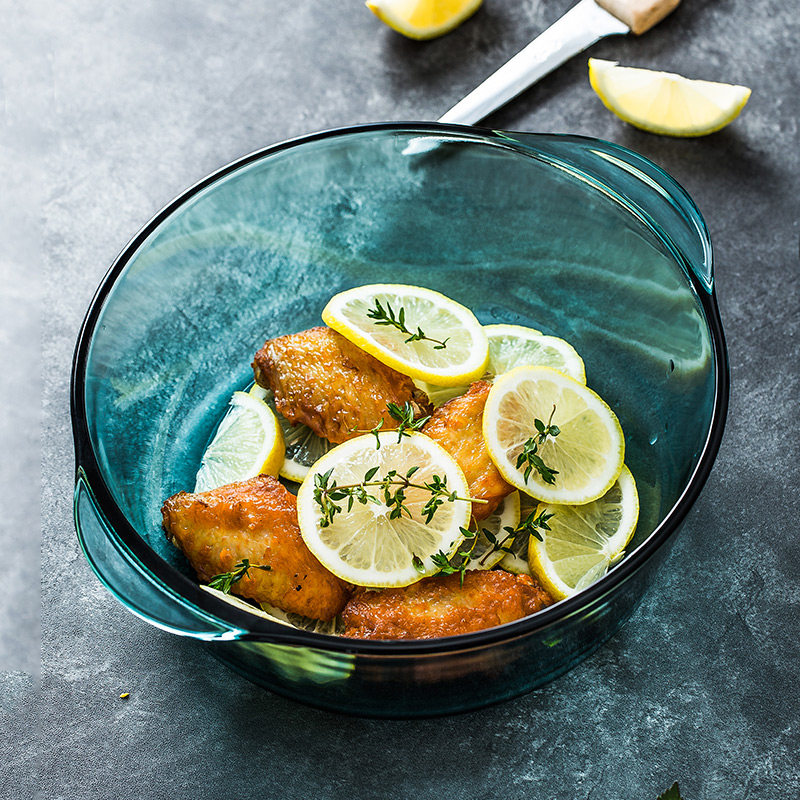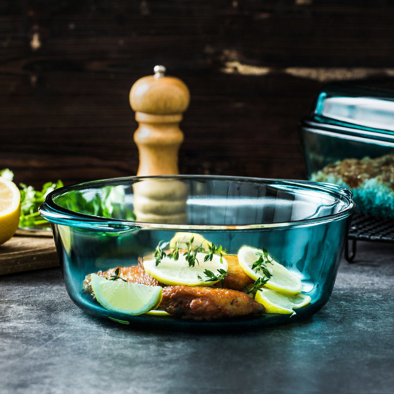 Imported blue tempered heat resistant glass saucepan grill pan suit white round with lid microwave oven Oven Cutlery Bowl