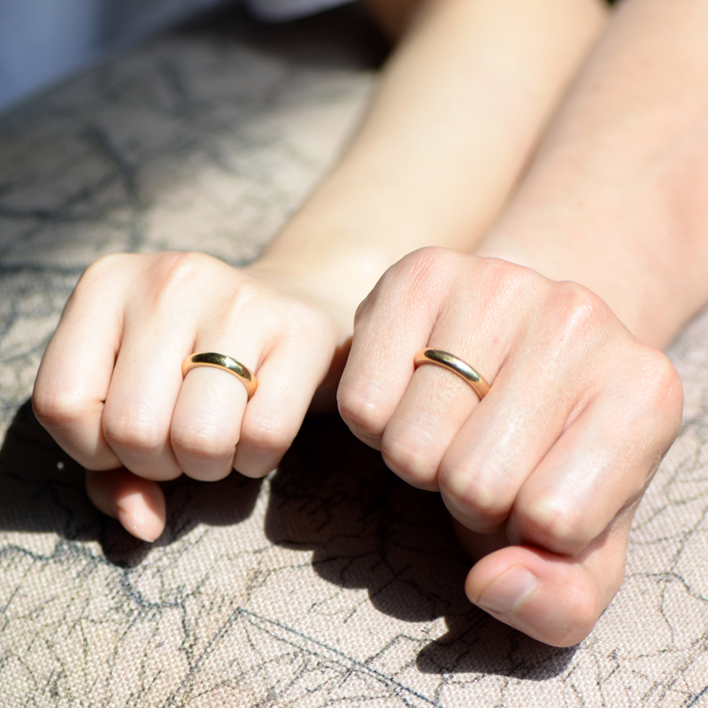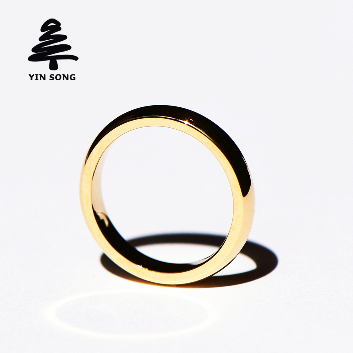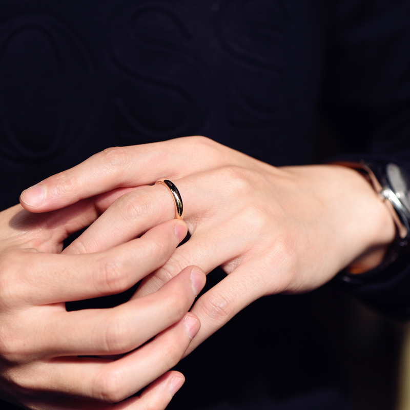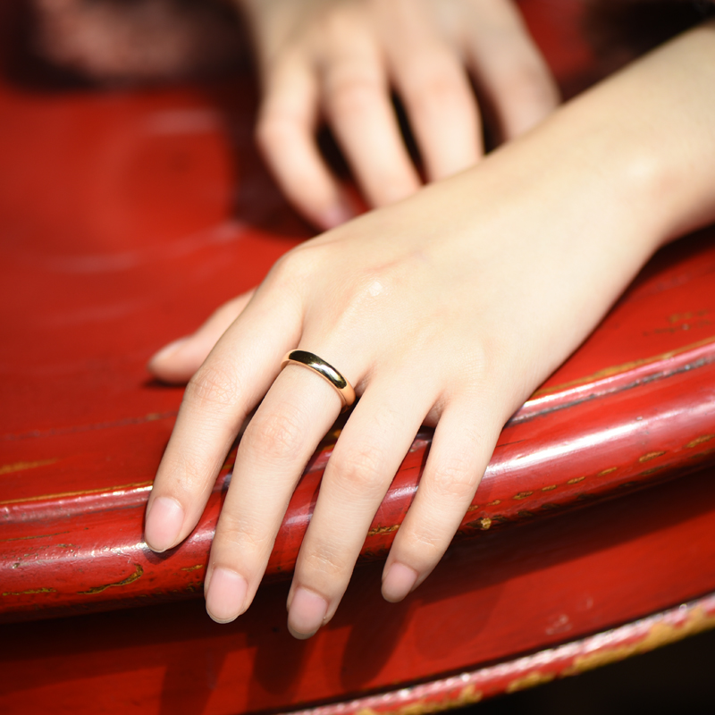 Curved surface belt waist ring, silver pine Au750 gold 18K gold ring couple pair ring, simple glossy men and women