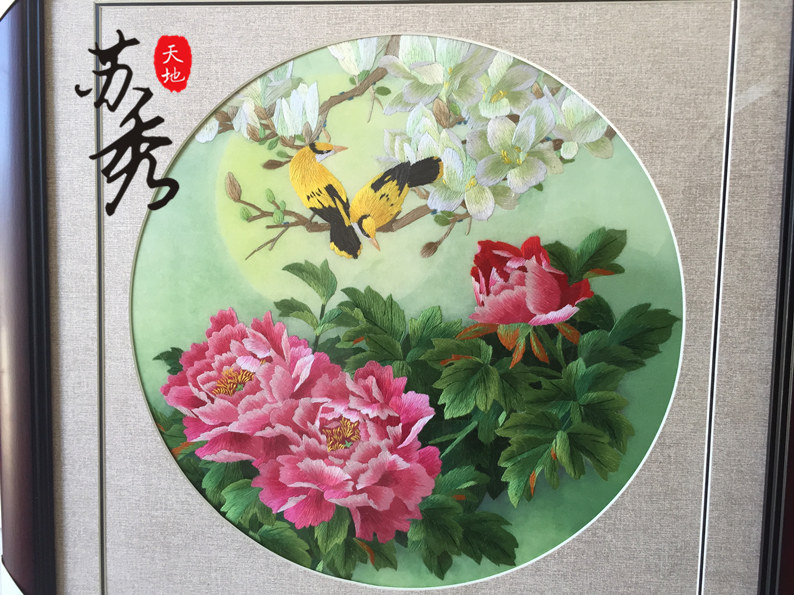 Suzhou embroidery Su embroidery finished product hanging drawing living room decorated by hand Mudan flowers Bird bedroom Electric meter box