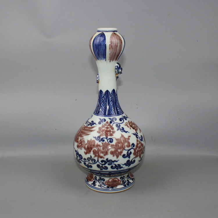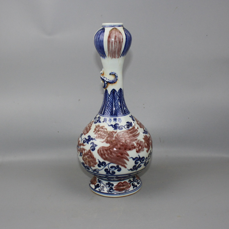 Minqing Flower Glazed Red Tangled Snake Garlic Head Bottle Painting Phoenix Ancient Play Antique Collection Boutique Pendulum Replica Antique Porcelain Jingdezhen